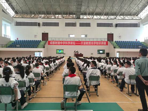 为了更好地宣传光学知识,发展科学文化,在2016年5月18日,中国科学院光束控制重点实验室主任助理亓波,科学传播办主任王倩等人到来到了成都市树德中学外国语校区,给同学们带来了“浩瀚宇宙 星光之美”的科普报告。