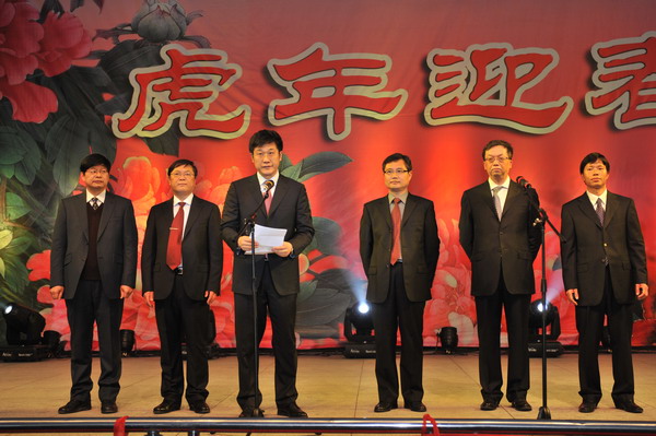 2月26日 晚,我所职工、离退休老同志、研究生及职工家属五千余人,在牧马山园区灯光球场欢聚一堂,举办 “虎年迎春” 文艺焰火晚会,共迎元宵。所党政领导班子成员走上舞台向职工拜年。四川省政协副主席、所长张雨东同志致新春贺词,并向全所干部职工以及一贯关心支持我所发展的嘉宾,表示忠心感谢和崇高敬意。致词中,张所长回顾了过去一年我所取得的重大成果,并指出,2010 年将迎来我所建所 40 周年,全所要结合实际工作, 深入贯彻落实科学发展观,努 力 解决科技创新中遇到的问题,持续提升全所科研水平,为构建和谐、创新、持续发展的光电所 而努力奋斗。晚会由党委副书记杨虎同志主持。