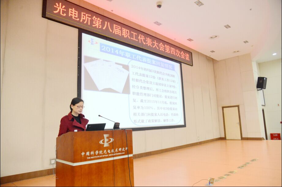 12月30日至31日,光电所第八届职工代表大会第四次会议在学术报告厅举行。全所职工代表,院士、研究员、高级主管及中层干部等特邀代表共260余人出席大会。所党委副书记、副所长、职代会主席魏全忠主持会议。