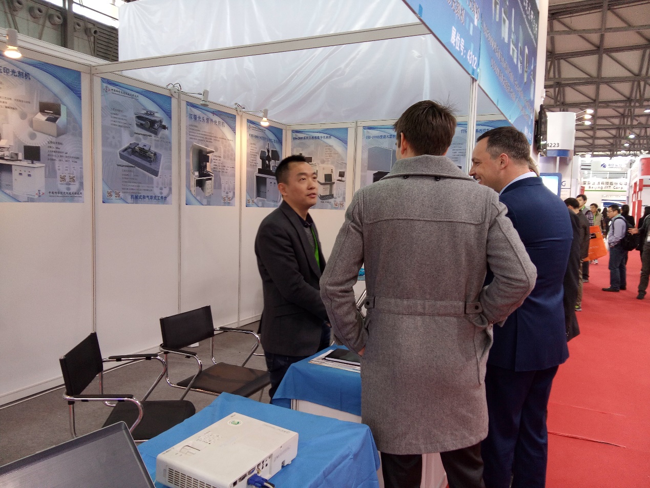 善的技术研发平台及研发团队,积累了丰富的整机集成经验。在国家重大专项“沿途下蛋”理念的指导下,不断进取,取得了丰富的成果。近期开发成功的URE-2000/35系列紫外压印光刻机就是在国家重大专项支持下取得的成果。在光电所的展位上,不少国际友人以及国内专业人士前来咨询、洽谈业务,还有诸多投资公司前来商讨合作事项。通过SEMICON China2016展览会,我们既能及时跟进半导体行业的需求,同时也向国内外宣传了光电所研发的光刻机产品。更为可贵的是,会展期间已经有不少潜在客户签订了购买意向书。
