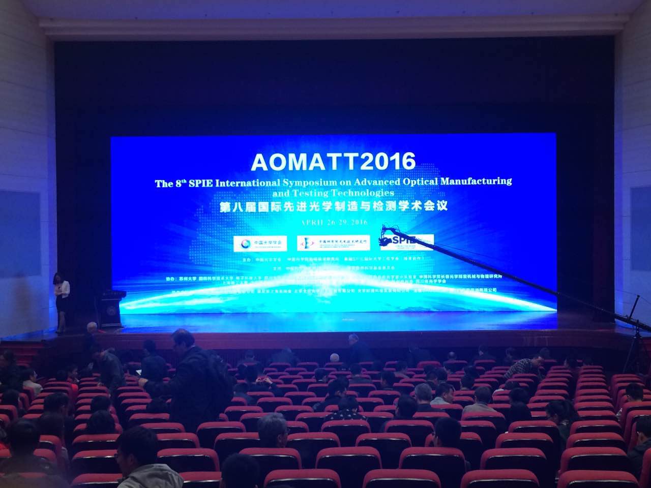 由中国光学学会、中国科学院光电技术研究所和美国国际光学工程学会(SPIE)联合主办,光电所承办、苏州大学协办的第八届国际先进光学制造与检测学术会议(AOMATT2016)4月26日在苏州国际会议中心拉开帷幕。本次会议吸引了来自十几个国家的500多位代表参加。这是光学-制造科学领域规模宏大的国际一流学术盛典。中国科学院光电技术研究已经承办七次会议,成果丰硕;今年已经是第八次。