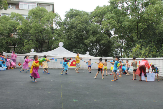 师生一起打水仗