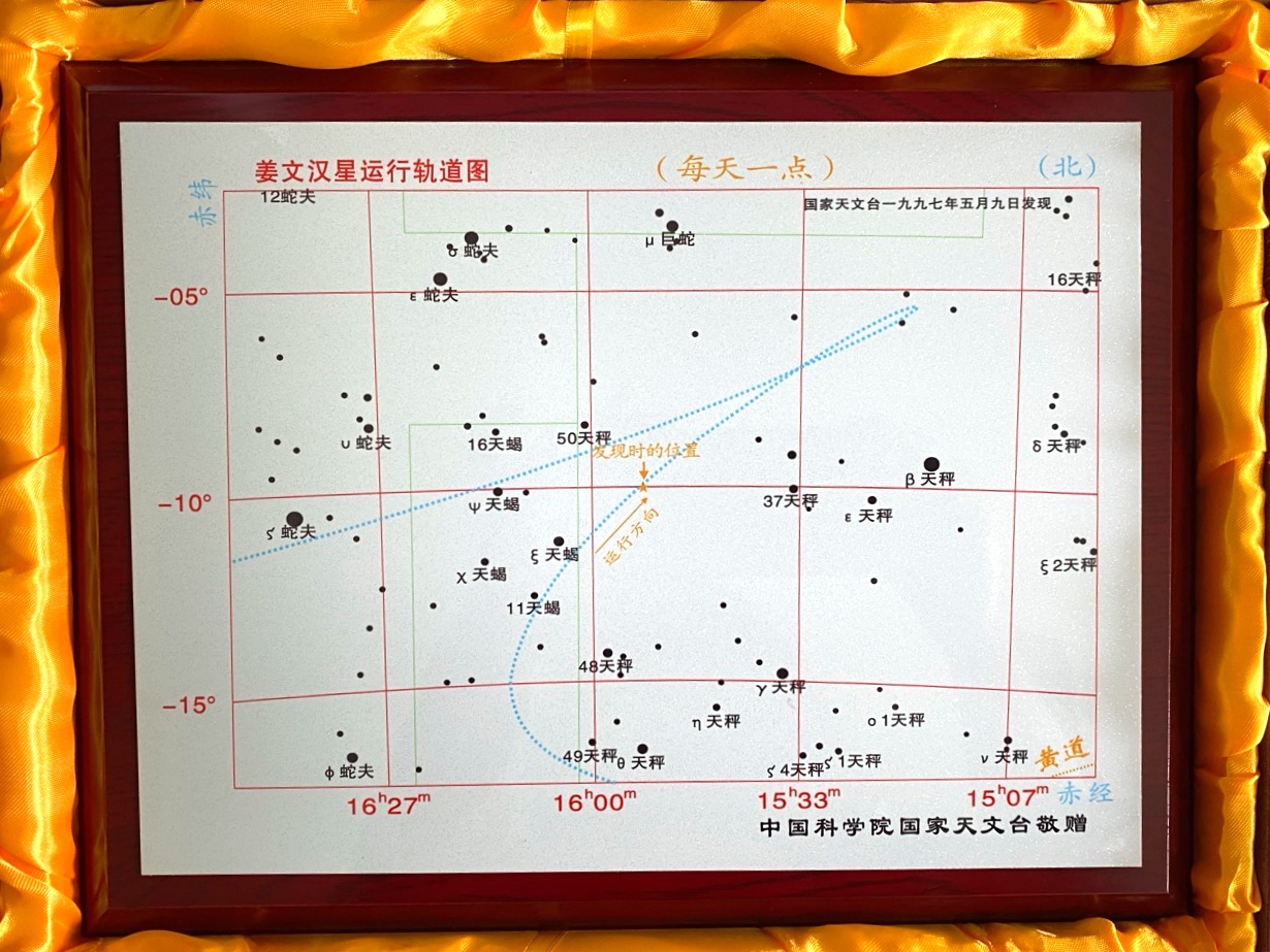 姜文汉院士是著名光学工程专家,我国自适应光学的开拓者和奠基人。1979年开辟自适应光学研究方向,1990年国内首次、世界第三个实现了天文望远镜自适应光学实时校正成像。会上宣读了“姜文汉星”命名公报和命名证书,颁授运行轨道图,并介绍了该小行星的发现过程。