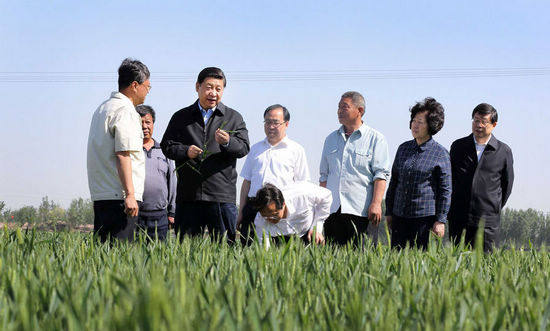 习近平十分关心夏粮形势。在列车上,他就向随行的农业部门负责人了解全国夏粮生产情况。到武清站一下列车,他直接来到南蔡村镇丁家??村的小麦大田,仔细察看小麦长势,向农民询问田间管理和预产情况,叮嘱当地干部加强农技服务,搞好田间管理,努力争取夏粮丰收。他强调,一个国家只有立足粮食基本自给,才能掌握粮食安全主动权,进而才能掌握经济社会发展这个大局。他希望天津加快发展现代都市型农业,努力提高粮食自给能力,为确保国家粮食安全多作贡献。