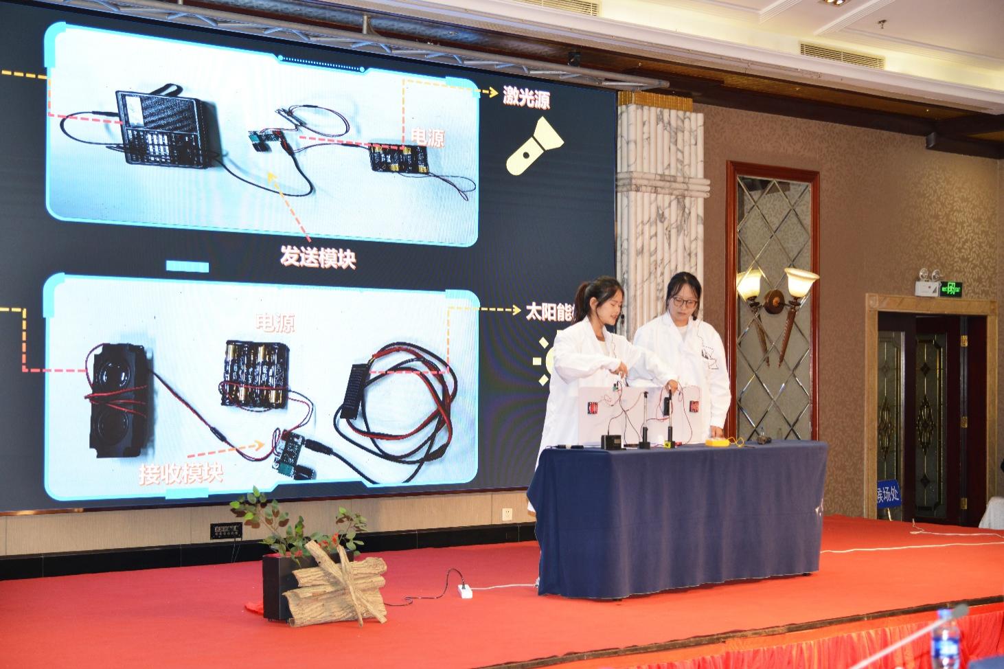 活动现场,参赛队伍不仅带来了各自研究领域的科研成果和科学知识,新颖的实验编排和有趣的表演形式既充分展现科技、科普工作者的创新活力与风采,也刷新了公众对科学实验的认知。光电所科普协会唐鸿洋、杨晓丽、王冉、刘炜、李泽宇代表光电所带来了《信息传递的华丽蜕变:从原始火光迈向激光时代》的实验展演。该展演通过沉浸式实验,带领现场观摩的中小学生及科研院所师生穿越光通信千年演进史,用模拟火炬演示原始人的烽火传信、用小灯泡和激光器展示光的方向性、用演示设备实现调幅激光通信播放音乐等,揭示了现代光通信技术的基本科学原理,让观众感受科学的奇妙魅力。