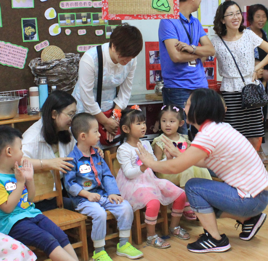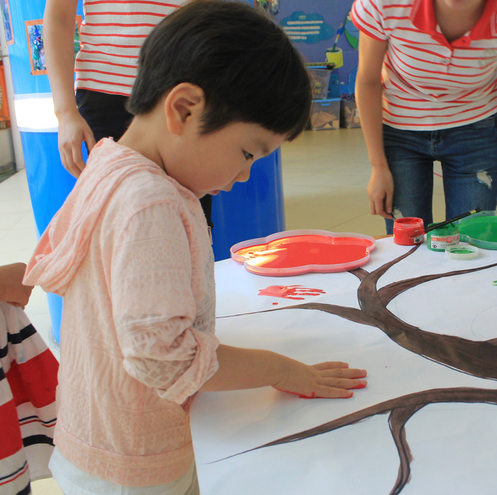 而今年刚入学的小班新生,陌生的环境,陌生的人,似乎需要哭一场才能表示一下对于人生第一个独立期的感受。但是,谁说上幼儿园就一定要哭的?光幼的孩子,才踏进幼儿园的大门,就被牢牢地吸引住。大厅里的桌子上摆放着一张画着一棵大树的画纸,上面还放着两个装满颜料的盘子,原来这就是新生们的入学仪式,他们要在老师为他们佩戴上爱心卡后,在这棵大树上留下他们的手印,这样就正式成为光电所幼儿园的一员了。孩子们迫不及待地在大树上留下象征着成长的手印,他们终于可以理直气壮地“熊”一次而不用担心妈妈嫌脏了。留完手印,小朋友在家长的带领下来到班级,和老师、小朋友一一熟悉。亲子游戏让师生、家园很快消除了陌生。接着,孩子们来到操场,一起玩吹泡泡、森林中的动物世界、彩虹伞等游戏。在老师们用心设计的一个个环节中,孩子们开心得连爸爸妈妈都忘记了。游戏结束,快乐的孩子们回到教室,端正地坐在小板凳上,喝着老师为他们准备的温度适宜的水,快乐地度过了他们在幼儿园的第一天。