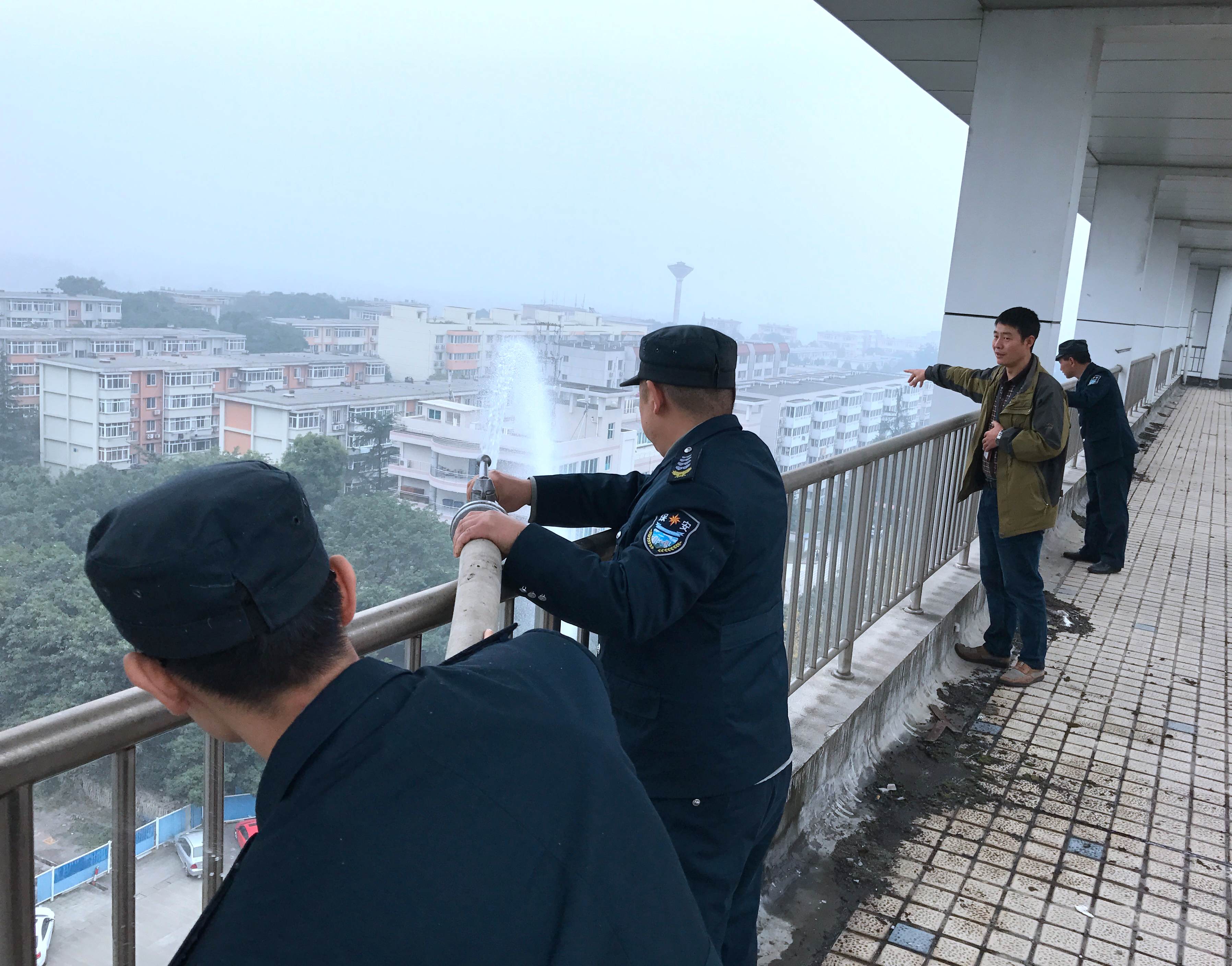 在检测声光报警、自消控制系统设备有效性的同时,安保人员在光束楼楼顶利用消火栓、水泵系统进行了出水测试,整个演练过程中分工清晰明确、配合紧密有序,达到了预期演练目标,为更好的促进我所消防安全管理积累了实战经验。