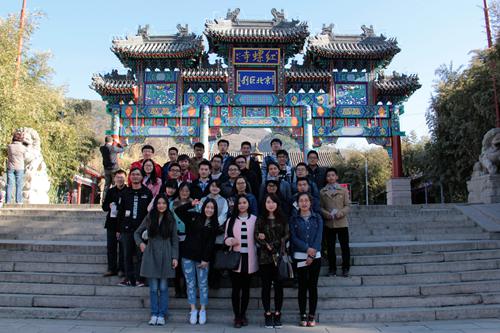 此次春游的目的地是北京怀柔区红螺寺景区,红螺寺坐北朝南,依山势而建,布局严谨,气势雄伟。它背倚红螺山,南照红螺湖,山环水绕,林木丰茂,古树参天。红螺寺处于红螺山山前的千亩苍翠的古松林之中,形成一幅“碧波藏古刹”的优美的画卷。