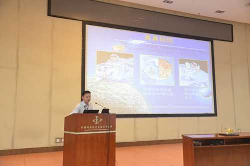 光电所应用光学技术研究室白瑜博士做了“嫦娥探月工程”的科普报告。他以“真真假假”的互动问题开始了嫦娥探月科普讲座,极大地激发了同学们对我国探月工程的兴趣。白瑜博士从月球的概述,到人类探月历程,再到我国的嫦娥探月工程,生动的介绍了我国嫦娥探月的艰辛和激动人心的时刻。当白瑜谈到玉兔上鲜艳的五星红旗首次被光电所研制的地形地貌相机拍摄并传回地球时,同学们热烈的掌声响彻大厅。当看到嫦娥四号将首次在月球背面着陆,嫦娥五号将采样返回地球时,同学们激情高涨,会场内掌声雷动。