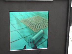 机器人本体配置有两套检测用摄像机,分别位于正前方及后方;其中前方摄像机为18倍变倍摄像机,带一维俯仰转台,转动范围±60°;后视摄像机为一广角摄像机,其视场角不小于35°。为克服水下照明不足,并配有四套亮度可调照明系统。