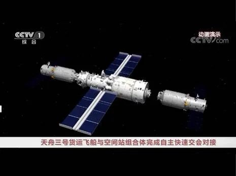 2021年9月20日,时值中秋佳节,装载了航天员生活物资、舱外航天服及出舱消耗品、空间站平台物资及部分载荷和推进剂的天舟三号货运飞船顺利发射,并于6.5小时后采用自主快速交会对接模式成功对接于我国空间站天和核心舱后向端口。