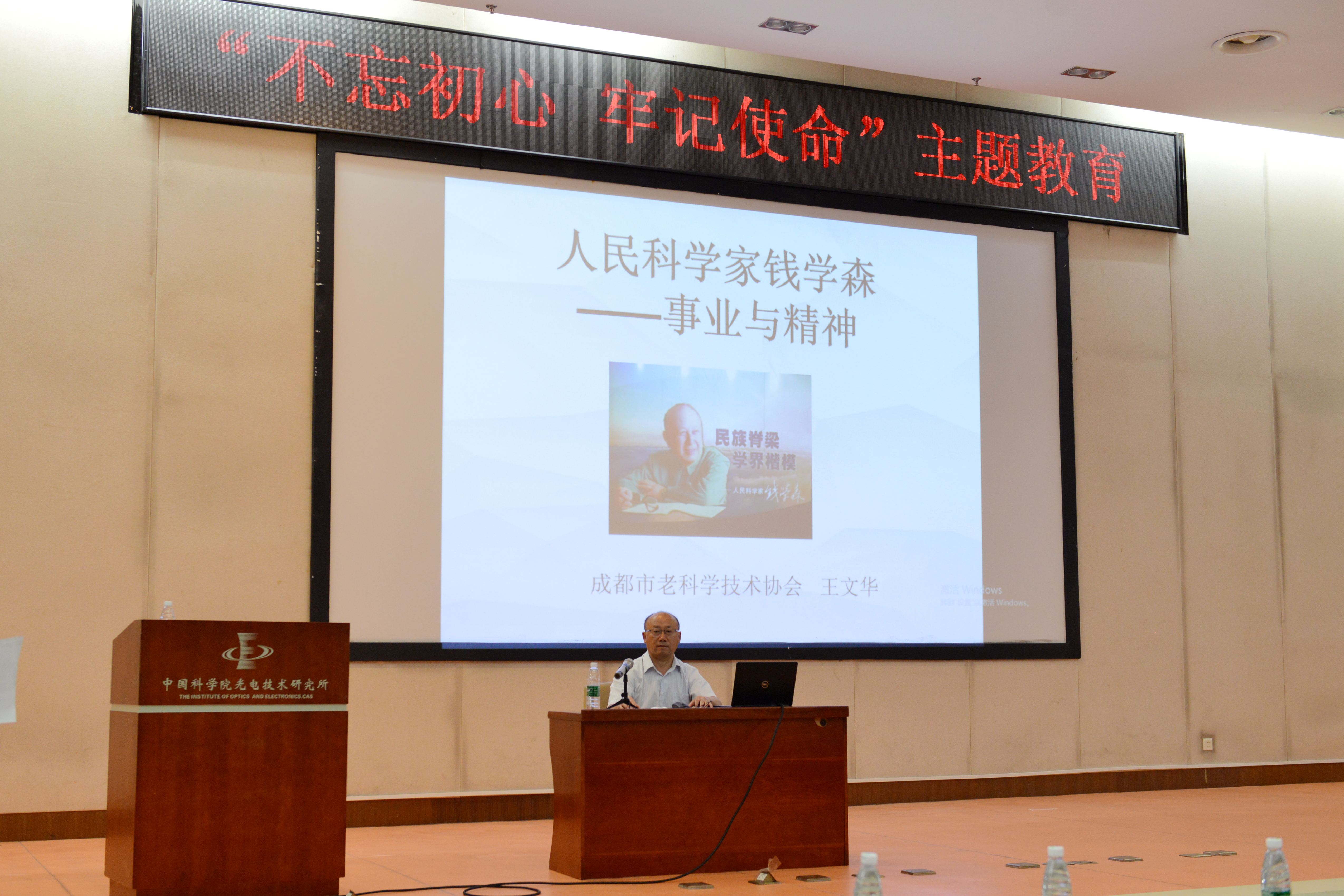为进一步深入学习宣传、贯彻落实党的十九大精神和习近平总书记重要讲话精神,深入开展“不忘初心 牢记使命”主题教育,进一步增强科研人员的担当意识和责任意识,7月17日,光电所邀请四川省作家协会会员、四川省科普作家协会理事,高级工程师、工程技术专家王文华作《人民科学家钱学森——事业与精神》讲座。