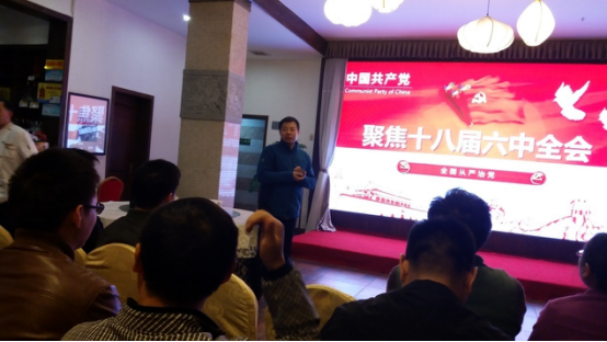 11月18日、19日,八室党支部在剑阁组织了重走长征路暨“两学一做”第四阶段学习。全体党员18日晚,首先认真学习了中国共产党第十八届六中全会精神,深刻理解了“从严治党”的内涵和重大意义,对新形势下党内政治生活若干准则进行了逐条解读。随后共同观看电影《杨善洲》,学习优秀共产党员代表杨善洲的先进事迹,学习他心系群众心系党,生活至俭、对人民以大德大爱的公仆精神。观影后,在场的同志们积极发言,感慨杨善洲执着质朴、不忘初心的光辉品格的同时,重新认识并坚定了科研工作者的基本信念——“探索科学真理、追求技术极致、报效祖国人民”。