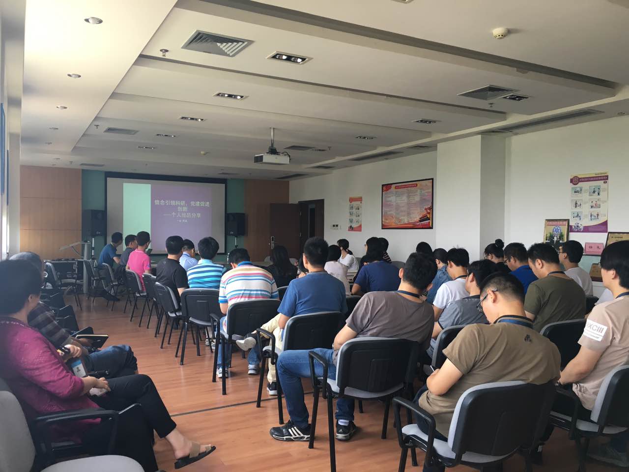 为认真践行“两学一做”常态化制度化党建要求,积极响应院党委“信念引领科研 党建促进创新”的活动号召,6月7日下午,一室党支部在四楼会议室举行主题交流研讨,以青年工作者的成长之路分享形式,给全室党员同志展开一卷人才与单位共同发展的画卷。