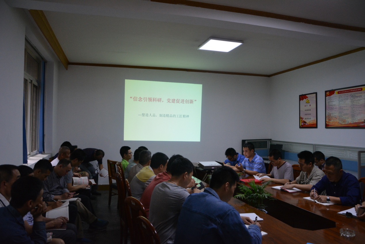 2017年6月14日下午, 结合精制中心党支部2017年“信念引领科研, 党建促进创新”工作计划的安排,进一步提升精制中心党支部的战斗力和凝聚力,提升党员的先锋模范带头作用,支部书记余伦向全体党员讲了题为“塑造人品,制造精品的工匠精神”的党课。