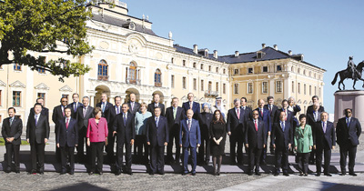 与会各国领导人及有关国际组织负责人集体合影。记者 丁林摄