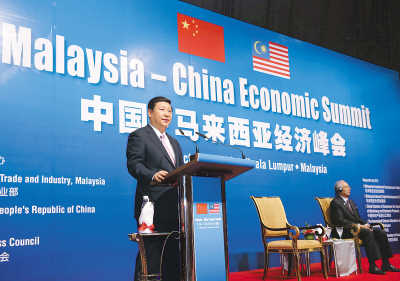 国家主席习近平10月4日和马来西亚总理纳吉布在吉隆坡共同出席中马经济合作高峰论坛,就加强两国务实合作、中国经济发展发表重要讲话,希望两国经济界人士抓住机遇,续写互利合作新篇章。