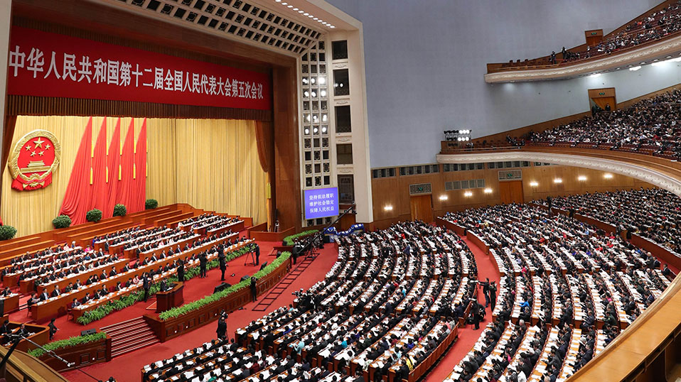 3月12日,十二届全国人大五次会议在北京人民大会堂举行第三次全体会议。