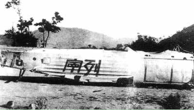 这是四川军阀刘湘的一架德国双翼容克式高级教练机。在从南京飞往四川的途中,飞行员迷航,飞机上的汽油耗光了,只得落下。飞行员叫龙文广,是1927年国共合作时,去苏联学的飞行。被工农红军俘虏后加入红军,成为红军的第一位飞行员。