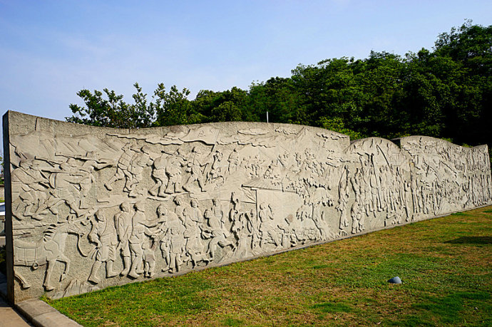 进入红军烈士纪念园,首先看到的是大型红砂石雕《强渡嘉陵江》。1935年3月28日至31日,为策应中央红军北上,红四方面军主力分别在苍溪塔山湾、溪口和阆中涧溪口、南津关、河溪关、石龙茄子渡、塔子山市、沙溪场等渡口成功强渡,至4月3日控制了从广元至南部段嘉陵江西部地区。《强渡嘉陵江》雕塑高6米、长20米,塑像上的人物栩栩如生,目光炯炯有神。他们望着前方,遥望着胜利的远方,展现了当年红四方面军在苏区人民的支援下,强渡嘉陵江的英勇场景。