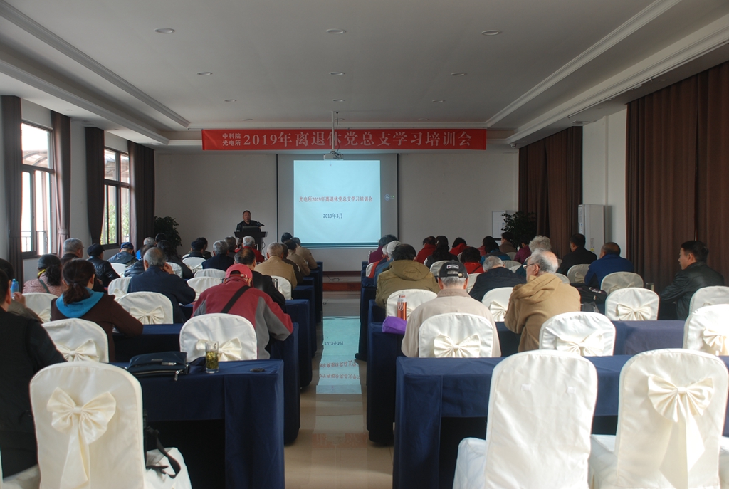 2019年3月26日,光电所离退休党总支组织开展了2019年学习培训会。会议由离退休党总支书记、离退休办负责人曹杰主持,离退休党总支委员、各离退休党支部书记、党小组长、党务工作骨干60余人参加。