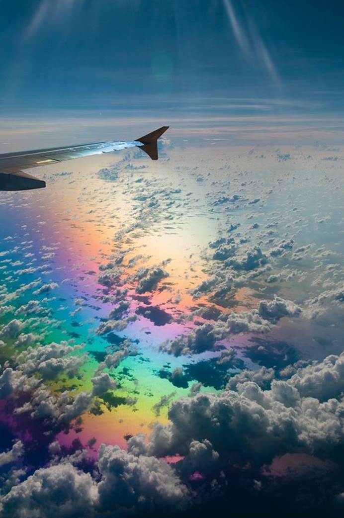 很多人看到这幅照片的第一反应是,“一定是PS的”。但实际上,这并不是依靠电脑特效才能制作出的“假照片”,而是可以实实在在拍摄到的自然现象。不少网友在乘坐飞机的过程中,也都曾经拍摄到类似的壮丽景象,如下图。