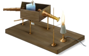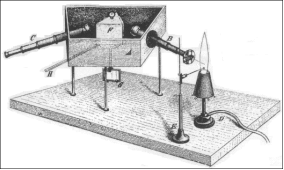 本生和基尔霍夫基使用光谱仪进行化学分析的装置(图片来源于网络)