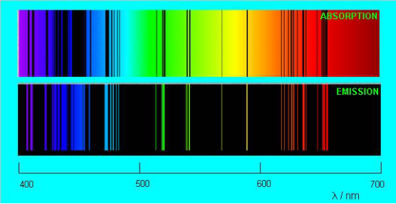 依旧发现光谱中来的亮线位置变成了暗线。后来经过一些列验证之后,他们终于得出结论,原来某些物质本身加热后的光谱表现为亮线(发射谱线),而这些物质的气体分子或原子被连续光谱照明时,则表现为暗线(吸收谱线)。他们进而想到太阳光谱中的夫琅和费线,认为因为太阳辐射从内往外传输的过程中,被太阳表面大气中的钠元素吸收后导致的(后来研究表明还有一部分暗线是地球大气中某些元素吸收所致)。结合他们手头的工作,既然光谱可以分析化学的成分,他们立刻想到,那也可以通过对这些暗线进行研究,来判定太阳的物质组成!时隔一百多年,我似乎还能感受到他们得出这一结论时的狂喜与兴奋。要知道这在当时是不可想象的事情,这对于研究遥远的太阳和星体具有划时代的意义,也从此开启了天体光谱学领域的大门。根据光谱分析法,他们先后发现了太阳上还有氢钠铁钙镍等元素。后来经过多年后研究,人们发现,太阳的化学成分与地球类似,只是比例不同而已。