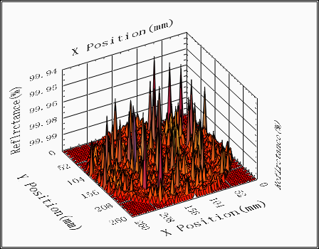该测试装置已经为大口径反射光学元件的反射率及其均匀性提供了高速、高精度、高空间分辨率的二维扫描反射率检测、对大口径光学元件反射率的评估和优化起到重要技术支持,成为国家高技术项目质量控制必要的测试技术平台之一。