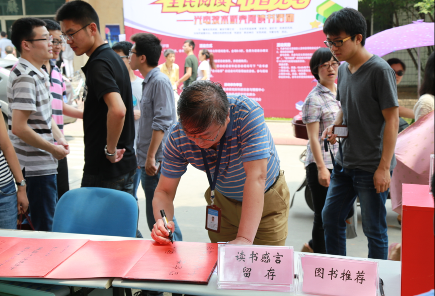 为认真贯彻落实党的十八大“开展全民阅读活动”和国家“倡导全民阅读,建设书香社会”的精神,推进学习型社会建设,5月27日,光电技术研究所在园区内成功举办了“全民阅读、书香光电”活动。 本次活动由光电所党委办公室、光电所科技信息与情报中心、研究生部悦读会和新华文轩西南购书中心联合举办。活动内容丰富多样,包括“我与图书--与好书为伴,与文明同行”征文活动、读书感想分享与留存、图书推荐、现场阅书与购书以及抽奖互动等环节。