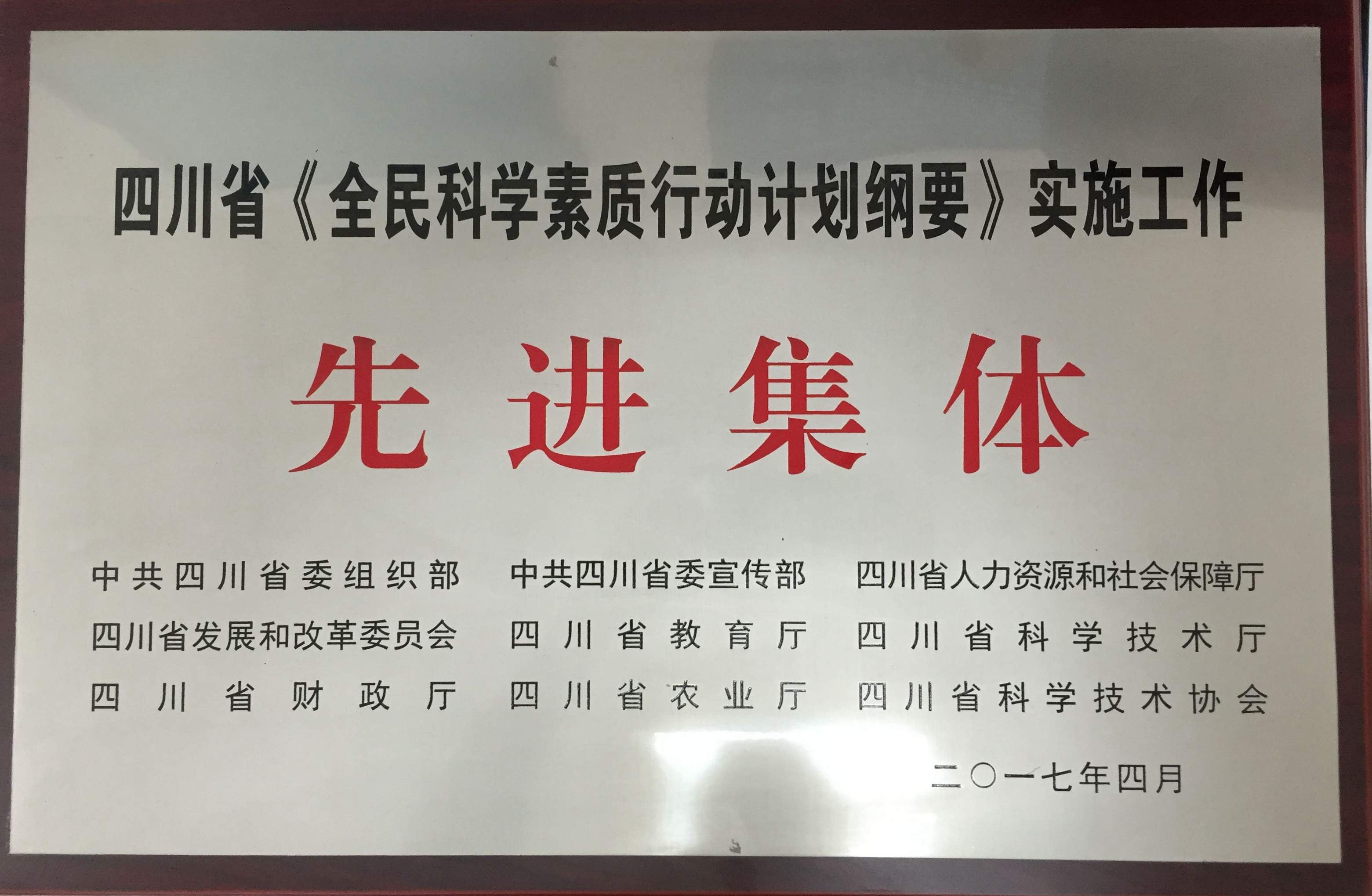 光电所获得四川省《全民科学素质行动计划纲要》“十二五”实施工作先进集体
