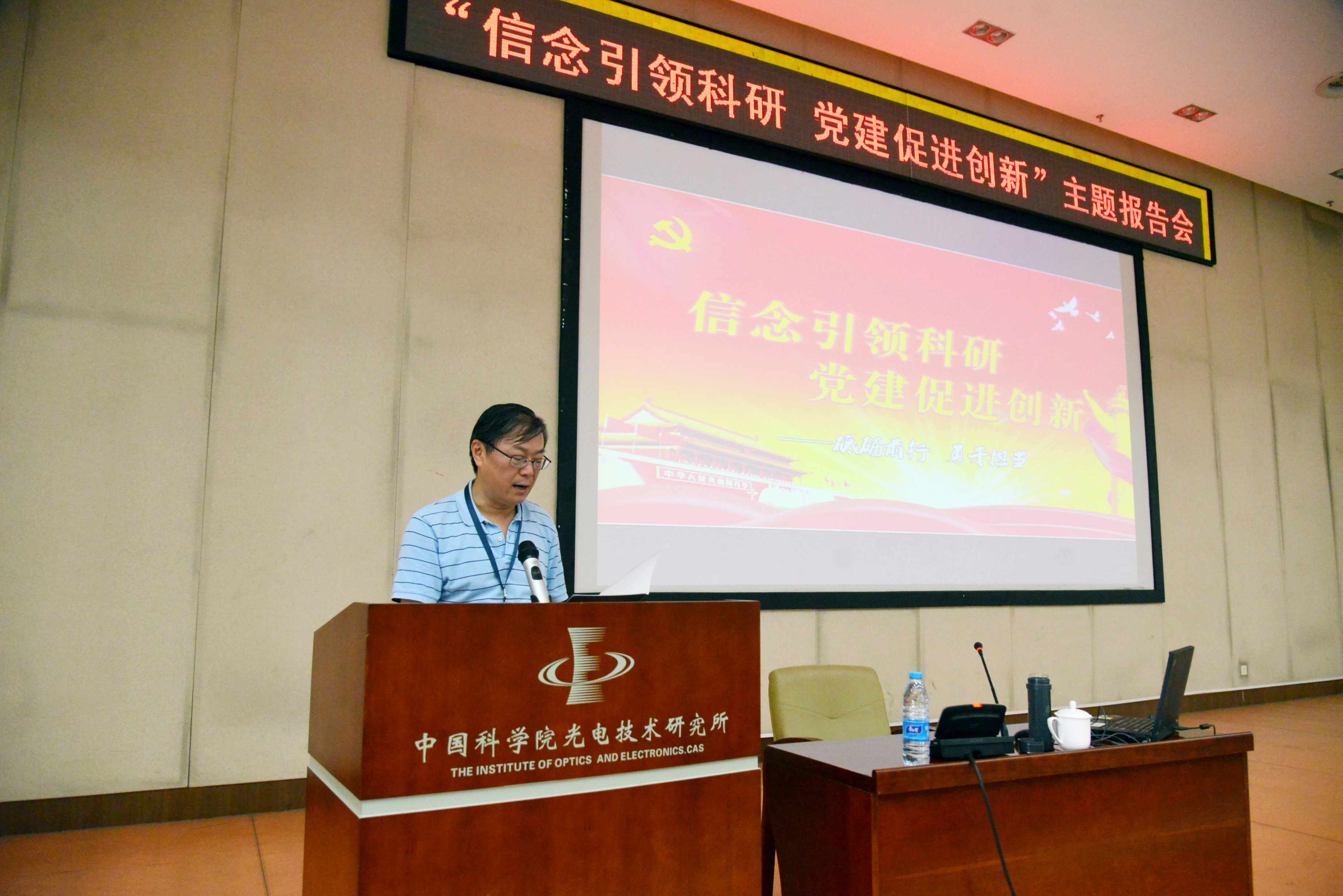 6月16日下午两点,光电所在学术报告厅举办“信念引领科研 党建促进创新”主题报告会。各党总支书记、副书记、党支部书记、副书记、支委委员,副高以上党员,机关全体人员以及研究生党员参加报告会。党委副书记、副所长魏全忠主持会议。