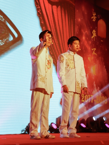 晚会最后,研究生部永远18岁的向老师与研究生杨可君倾情演唱《好人好梦》,为晚会画上圆满的句号。