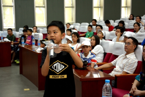 张飞博士为现场观众带来了题为《神奇的光学悬链线》的科普报告,他通过精彩的视频和图片把抽象的悬链线讲述得通俗易懂,并通过互动问答把现场气氛带向高潮,同学们纷纷举手向张飞老师提问和回答问题,即使报告已经结束,同学们还在津津乐道。张晓虎博士带来了《全息技术》的科普报告,报告开始播放的2016年春晚李宇春表演视频深深地吸引了现场观众的注意力,同学们都在感叹全息技术的神奇魅力。张博士还现场教导孩子们自己动手做全息器材,体验全息的乐趣。