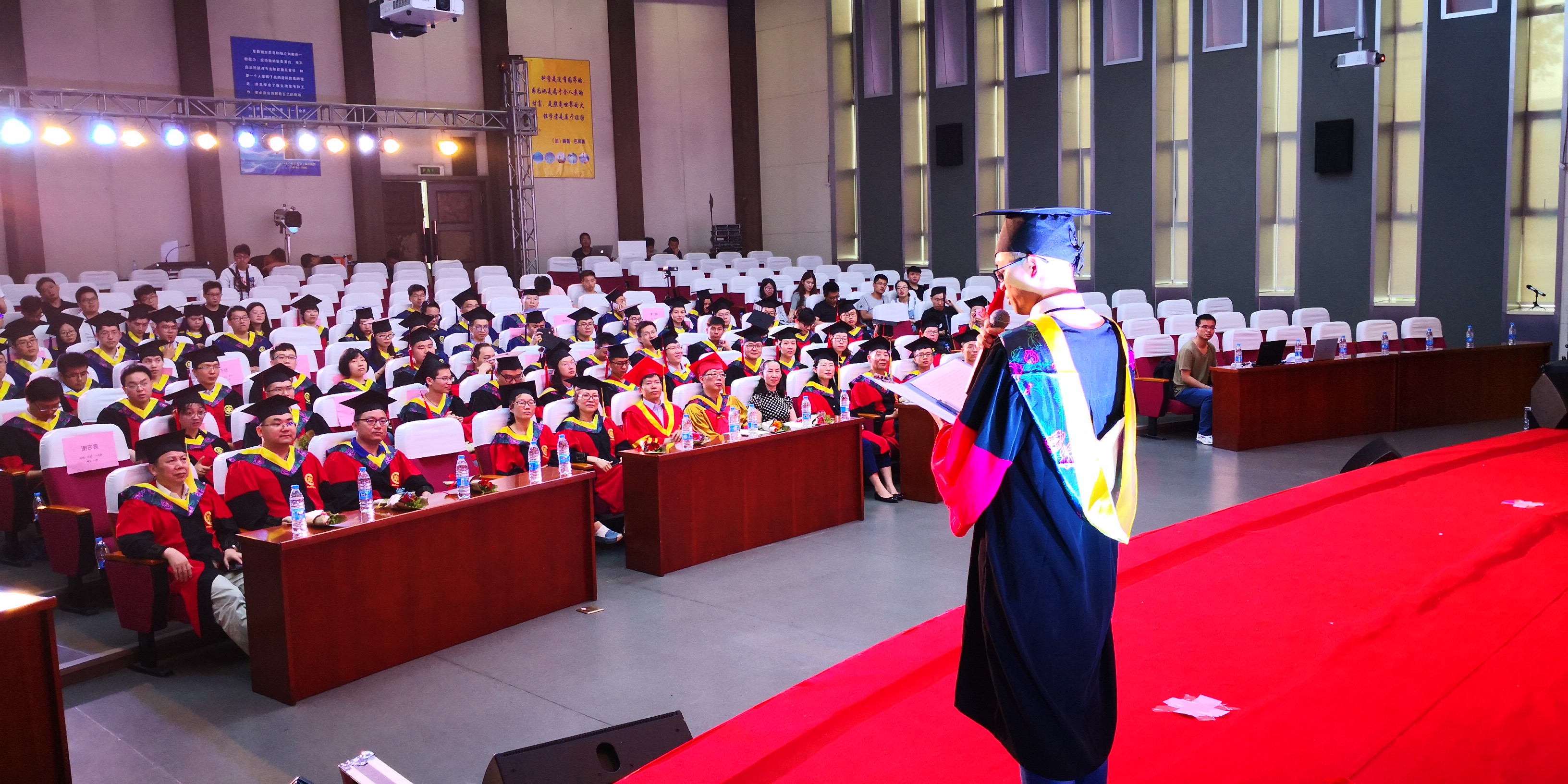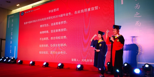 毕业生代表谢宗良随后通过分享自己从学业中的失望、挫折无助到经过不懈努力终于换来“蓦然回首,那人却在灯火阑珊处”的欣喜若狂的经历与感悟,表达了对光电所的挚爱和眷恋,对导师的感激和敬意,对同学的祝福和不舍。倡议同学们脚踏实地、放飞梦想,带着光电所、国科大的希冀,带着青春的满腔热血,肩负科技强国的历史使命,到中流击水,浪遏飞舟!