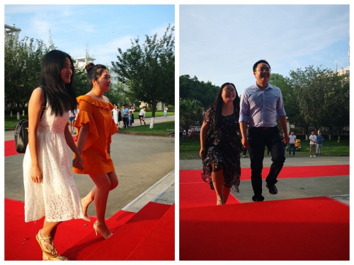 晚会以毕业生走红毯的形式开场,这个特别的仪式是延续往届毕业晚会的创新之处并且得到了毕业生们一直喜爱。87位毕业生或携伴侣、或携父母、或携子女、或与室友好朋友,携手走红毯,感恩奔前程。其中有毕业生牵着远道而来的双亲走过红毯的情景让人感动不已。