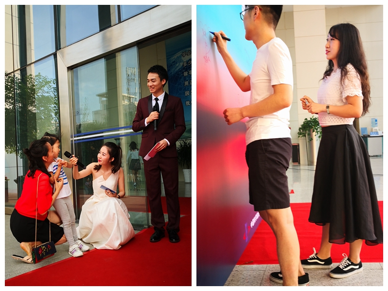 主持人对每组成员进行了简单的采访,采访的过程中各位毕业生们不仅表达了对身边人的祝福,同时也表达对母校光电所的依依不舍和感激,并在签名墙上留下名字或心愿。整个过程通过场外摄影师同步直播到内场,内外互动,场面感人。