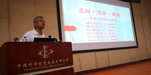 随后,饶长辉副所长在致辞中,对参加夏令营的全体营员表示热烈欢迎,鼓励营员充分利用一周的时间,了解光电所的科研环境、研究动态、研究生培养,有所感悟,有所收获,为今后求学、择业做好准备。紧接着,他作了题为《大口径光学望远镜发展》的专题报告,介绍了国内外大型光学望远镜的发展历程以及我所在此领域的发展状况。报告紧贴夏令营“仰望星空”的寓意。