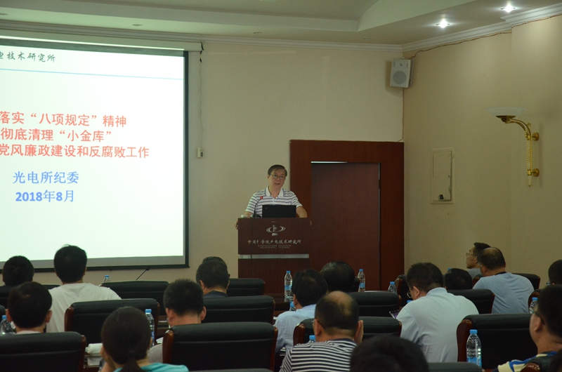 815日,光电所召开党委中心组扩大会议,党委副书记、纪委书记魏全忠作题目为《全面落实“八项规定”精神  坚决彻底清理“小金库”  扎实推进党风廉政建设和反腐败工作》的廉政党课报告。全所中层干部、党支部书记70余人参加了学习。
