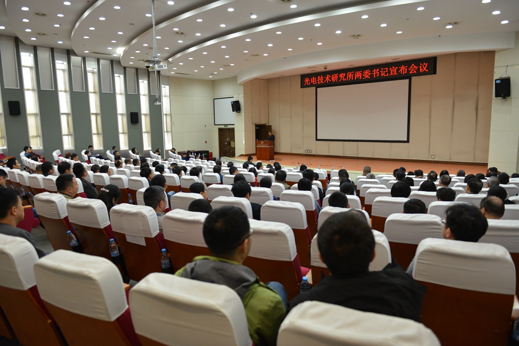41日,中科院光电所召开第十届党委和第九届纪委宣布大会。中科院成都分院分党组书记、常务副院长王学定,光电所领导班子成员、党委委员、纪委委员、中层干部及全体党支部委员参加大会。