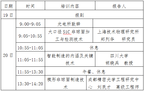 为帮助超精密光学制造与光学检测技术领域从业人员开阔视野,加强该领域从业人员的交流合作,由中国科学院人事局经费资助、中国科学院光电技术研究所承办的“超精密光学制造与检测技术”培训班定于2019年6月20日-21日在成都举办,欢迎各高校、科研院所、企业相关人员积极报名参加,报名截止时间2019年6月12日。现将培训班有关安排通知如下: