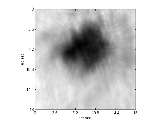 7月9日,中国科学院自适应光学重点实验室太阳自适应光学研究小组,在云南天文台1米红外太阳塔上,同时获得了可见光波段(图1)和近红外波段(图2)的太阳黑子高分辨率自适应光学校正图像,为突破太阳多波段高分辨力同时成像奠定了技术基础。这是该小组继2011年3月获得近红外波段太阳黑子和米粒结构高分辨率自适应光学校正图像后的又一重要进展。7月16日,该小组申请项目“云南天文台一米红外太阳塔自适应光学高分辨力成像技术研究”获得2011年国家自然科学基金天文联合基金重点项目支持。