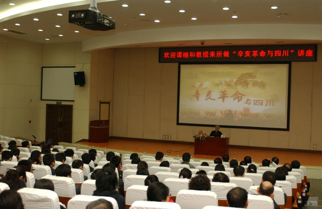 讲座分为两个部分,谭继和教授首先围绕辛亥革命的背景、性质和重要的历史意义作了精彩的阐述,与大家共同回顾了辛亥革命的那段波澜壮阔的历史。随后,谭教授结合他对四川保路运动的最新研究成果,为我们深刻地解读了保路运动的发生、发展以及四川的仁人志士在辛亥革命中的壮举,充分肯定了四川保路运动作为辛亥革命导火索对推进整个革命进程所作出的历史贡献。谭教授的精彩评述和独到见解使大家对辛亥革命的伟大意义以及四川在革命中起到的重要影响有了全新的认识。