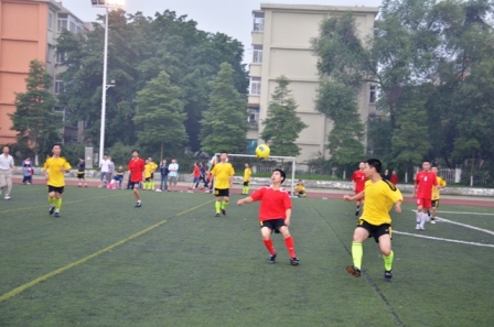 6月4日,“光电所2012年职工足球联赛”在牧马山园区足球场进行了决赛。科研一部代表队以4:1的比分战胜机关与公司联合代表队,问鼎冠军,科研一部代表队队长王进凭借完美表现获得“最具价值球员”殊荣,并以5粒进球与研究生代表队的李晖共享“最佳射手”称号。决赛结束后,饶长辉副所长为获奖球队和球员颁发了奖杯。