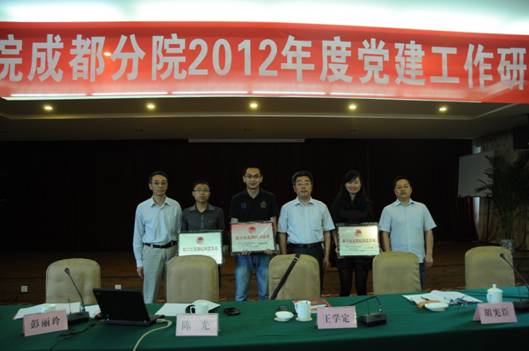 6月8日,从中科院成都分院2012年度党建工作研讨会上获悉,我所团委获得由中共四川省委创先争优活动领导小组办公室和共青团四川省委授予的四川省“五四红旗团委”称号,四川省直工委及中科院成都分院的领导在会上为我所颁发了奖状。