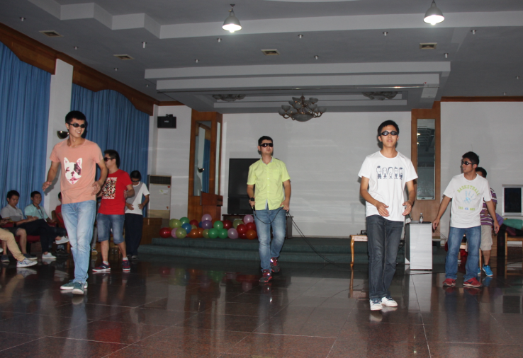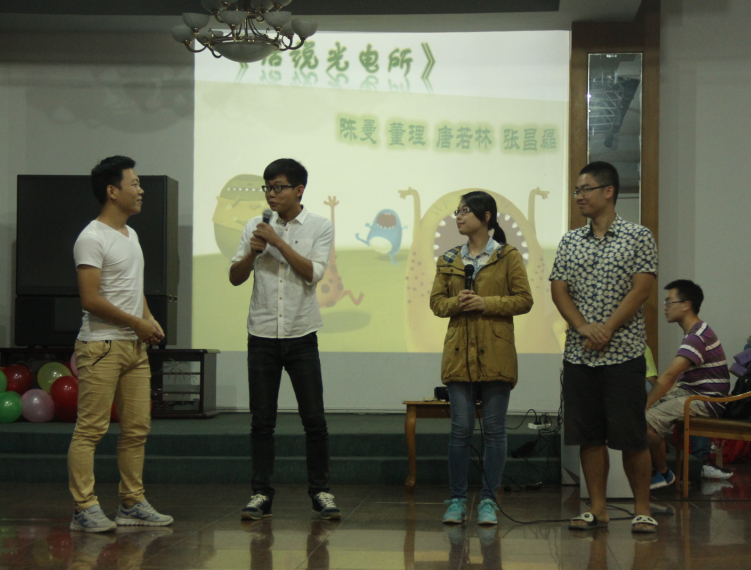 由何小君、马雨然、陈林等七位同学表演的超级酷炫开场舞uptown funk拉开了迎新会的帷幕。主持人兰琦、孙勃登场。由唐若林、陈曼、董理、张昌磊表演的三句半《话说光电所》,以幽默的语调、诙谐的动作,讲述新生们入所后的生活。搞笑的相声《基情四射》由孙勃和联合培养生刘庆浩表演,滑稽的语言引发在场观众笑声不断,独特的表述也饱含研究生们深切的室友情怀。