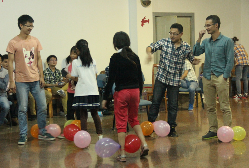 表演活动中穿插游戏和抽奖环节,研究生部胡琛老师作为嘉宾友情参与。幸运观众杨帆、姚靖威等人在惊喜中带走大礼包。研究生们以及到场的家属们积极参与找零钱、我爱记歌词、踩气球等游戏,激烈的赛场满含大家紧张和兴奋的心情。