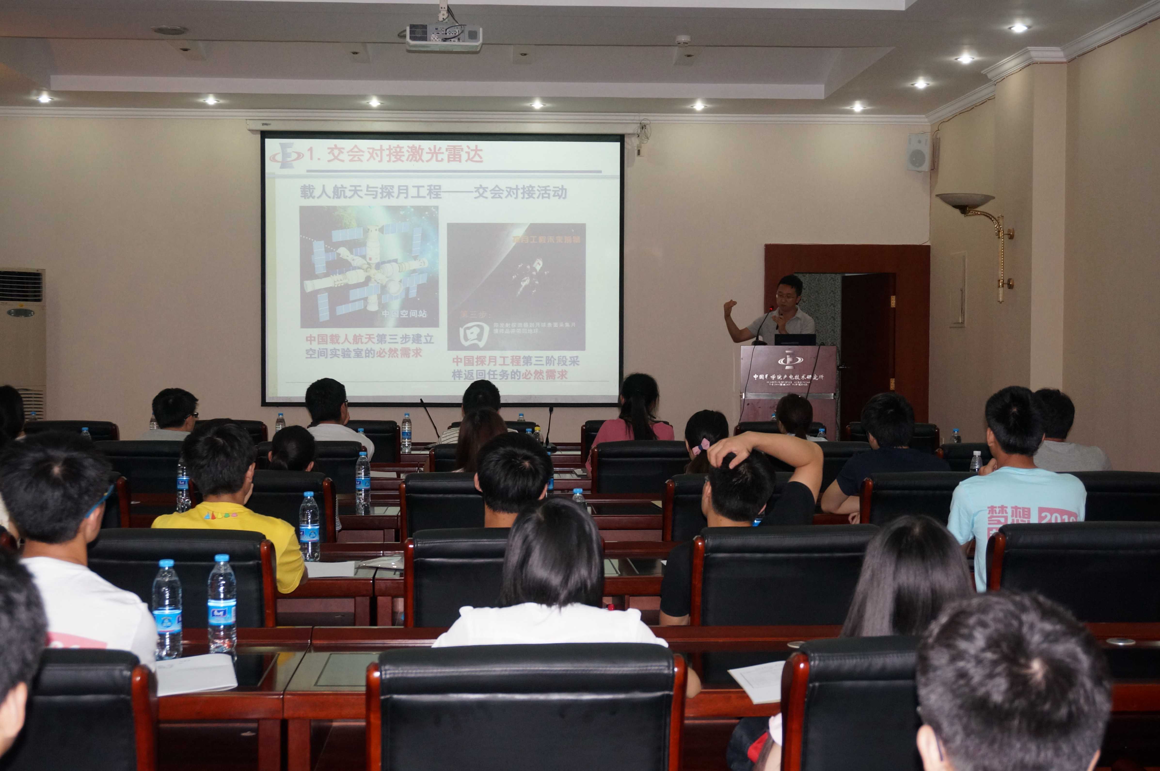 学术交流环节,光电所六室副主任周向东为营员们作了航空航天领域的专业报告,通过报告介绍了国内外在航空航天领域的发展动态,分别就神八、神九、神十与天宫一号交会对接、嫦娥三号探月工程等为大家进行了科普。同时,周向东还就实验室研究生学习及成长等方面给营员作了介绍,光电所八室副主任向银辉作了题为《让星星不再“眨眼”——自适应光学及应用》的报告,报告从伽利略望远镜谈起,以“星星眨眼”作比喻,引出了自适应光学要解决的问题——大气湍流对观测和成像的影响。随后重点介绍了自适应光学的基本原理以及应用领域。光电所开放室王长涛研究员就营员们关心的微纳光学领域发展给广大营员作了介绍,他以头发丝为例,让营员形象地感受到微纳光学的尺度,随后介绍了微纳光学在超分辨光刻、维纳传感、超分辨成像、微纳光学器件等领域的应用。报告后,营员们就自己感兴趣的问题与老师们进行了充分交流。