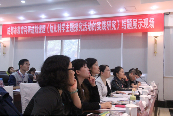 2016年10月20日上午,成都市教育科研规划课题《幼儿科学主题探究活动的实践研究》结题评审会在光电所幼儿园举行。成都市教科院基教所副所长刘敏、川师大副教授彭燕、四川省科学出版社社长助理钟文希、成都市学前教育联组组长朱晓娟、双流区研培中心主任邱刚田担任此次评审。区研培中心理论室主任易恩、教研员曾云莉、双流区学前教育科负责人高永红、光电所所办主任周鹏浩、光电所幼儿园课题组成员代表及成都市包括中小学在内的基础教育课题负责人共计60余人参加了此次课题结题会。成都市教科院教研员陈军主持会议。