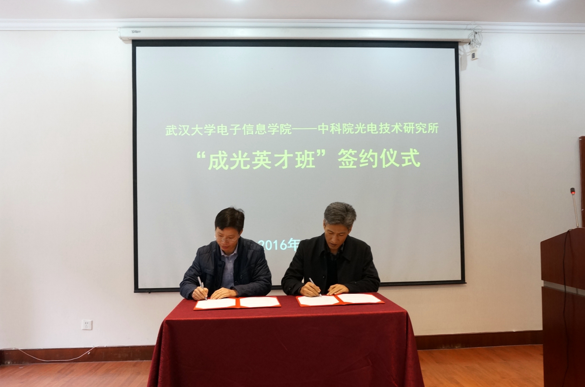 随后,双方正式签署了《武汉大学和中国科学院光电技术研究所关于联合举办“成光英才班”的合作协议》。